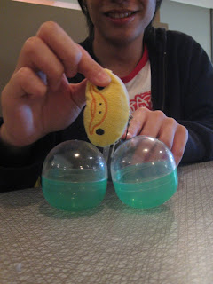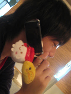 There! Succeed! LOL~ with his Japanese phone, so Q! Red MilkMilk and Yellow DUCK